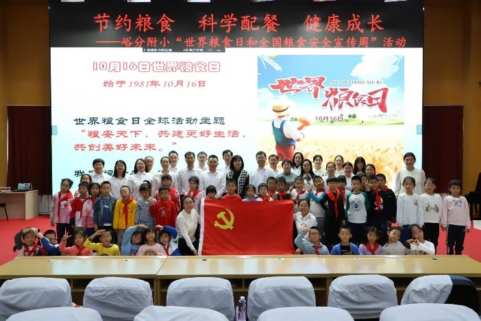 10月16日是第44个世界粮食日,所在周是全国粮食安全宣传周。为宣传普及粮食节约减损理念,促进居民营养健康消费,共同营造爱粮节粮、反对浪费的良好社会风尚,当日下午,粮食品质营养研究所党支部在北京市门头沟区大峪中学分校附属小学开展以“节约粮食、科学配餐、健康成长”为主题的粮油科普知识进校园主题党日活动。粮食品质营养研究所党支部23名党员、峪分附小百余名学生和部分家长代表,食堂工作人员参加活动。