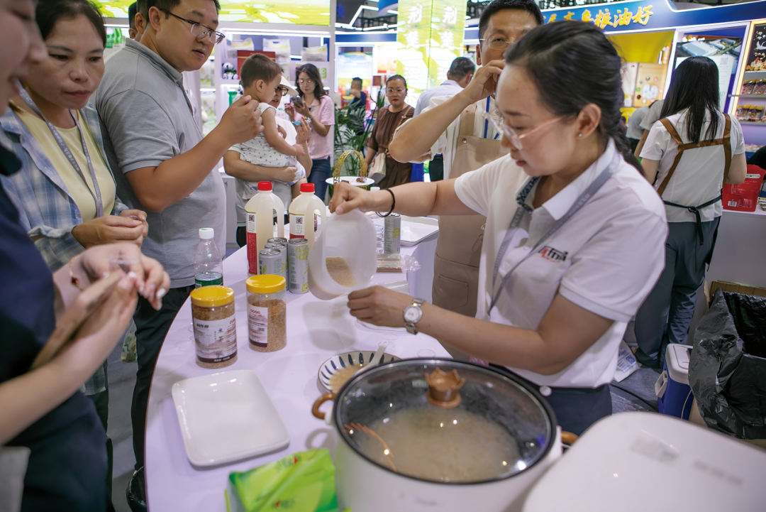 各地借助中国粮食交易大会,深入推进品牌形象享誉全国。走进东道主辽宁省展厅,“盘锦蟹田大米”“朝阳小米”“十月稻田红小豆”“铁岭玉米”等一系列“辽宁好粮油”产品集中亮相。“盘锦大米”品牌价值连续多年位居全国大米类前列,铁岭市昌图县挖掘“黄金玉米带”区域潜力,不断增强粮食产业链供应链韧性。其他各地优质粮油特色展区、全国脱贫地区消费扶贫展区和国际展区,人流攒动、产品琳琅满目。“吉林大米”“水韵苏米”“齐鲁粮油”“天府菜油”“山西小米”“广西香米”“江汉大米”“美豫粮油”“皖美粮油”“阜南黑芝麻油”“于都富硒大米”等粮食区域品牌“齐聚”本届大会,国际展区中来自三十多个国家的咖啡等众多优质产品吸引消费者驻足购买,优质粮油产品呈现出“百花齐放”的可喜局面,充分彰显了粮油品牌蓬勃发展的独特魅力。